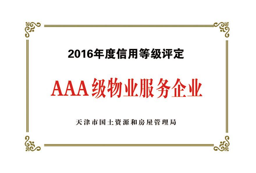 公司目前被授予:中國(guó)保安協(xié)會(huì)理事單位、物業(yè)管理綜合實(shí)力入圍企業(yè)、天津市物業(yè)協(xié)會(huì)理事單位、天津市保安協(xié)會(huì)常務(wù)理事單位、天津市保潔協(xié)會(huì)明星企業(yè)、天津市科技小巨人企業(yè)、天津市科技型企業(yè)、天津市物業(yè)管理企業(yè)優(yōu)秀項(xiàng)目經(jīng)理、企業(yè)信用評(píng)價(jià)體系A(chǔ)AA級(jí)企業(yè)、AAA級(jí)誠(chéng)信經(jīng)營(yíng)示范單位、AAA級(jí)重合同守信用單位、2017年被天津市工商業(yè)聯(lián)合會(huì)評(píng)為天津市民營(yíng)企業(yè)促進(jìn)就業(yè)百?gòu)?qiáng)企業(yè)、社會(huì)捐贈(zèng)百?gòu)?qiáng)企業(yè)、2018年銷(xiāo)售收入百?gòu)?qiáng)企業(yè),2020年被天津市退役軍人事務(wù)局評(píng)為天津市吸納退役軍人就業(yè)先進(jìn)單位。